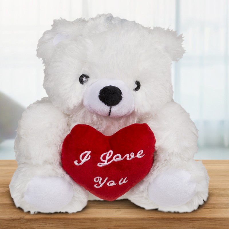 Une peluche douce en forme d’ours avec un cœur qui affiche le message "I love you".