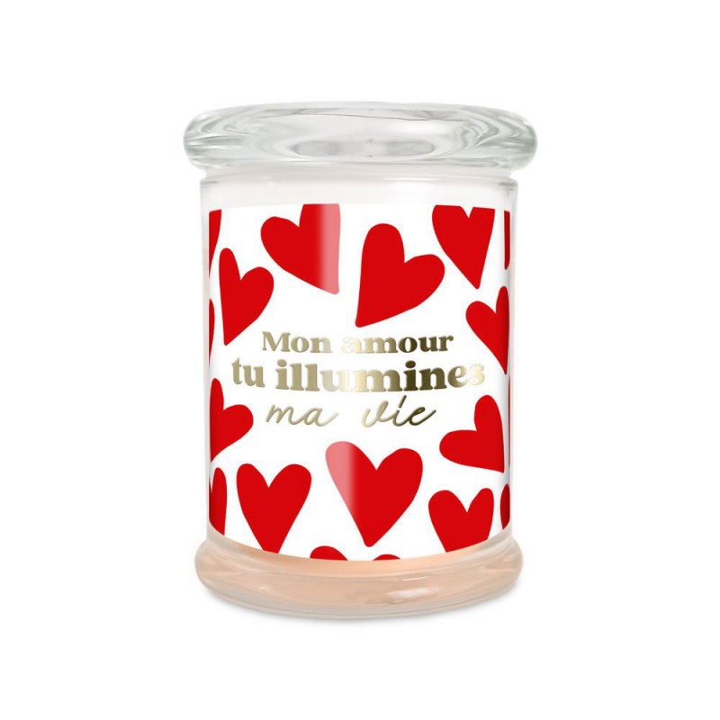 Différents modèles (au choix) : Je brûle d'amour pour toi, mon amour tu illumines ma vie ou je t'aime d'amour.