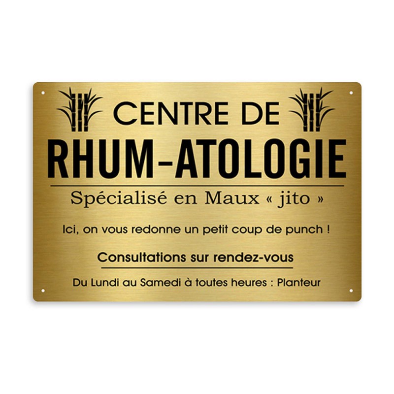 Cette plaque métallique murale façon plaque professionnelle affiche l'inscription "Centre de Rhum-Atologie".