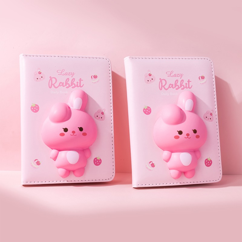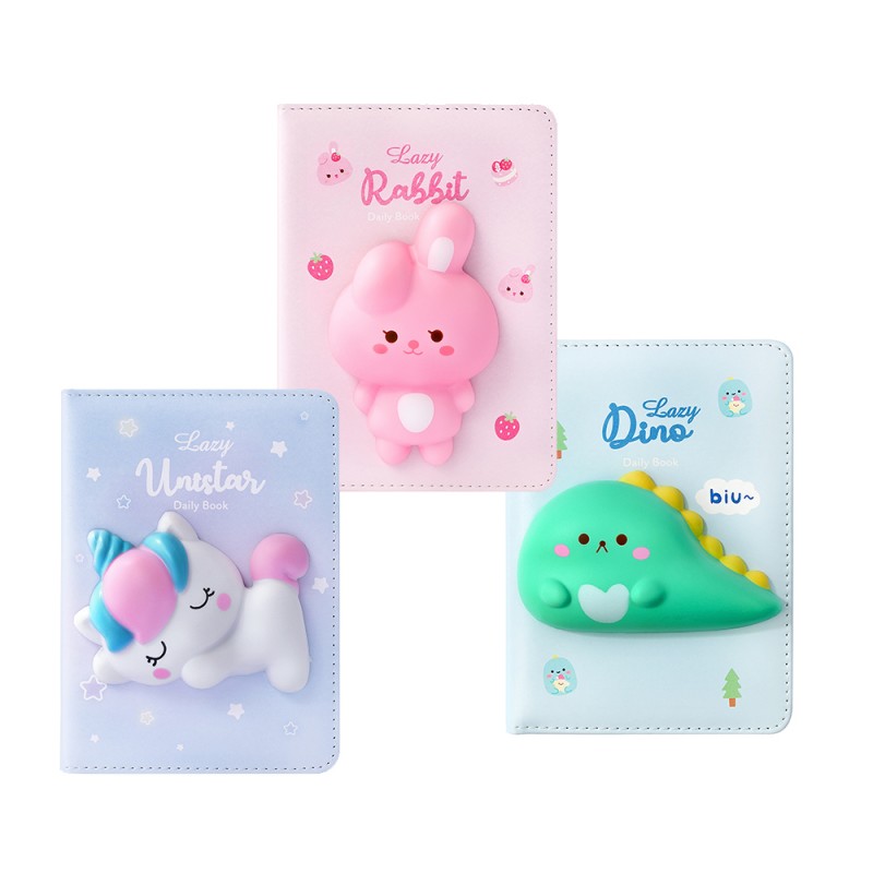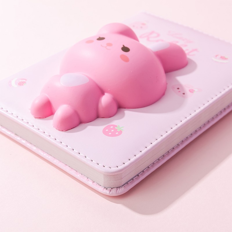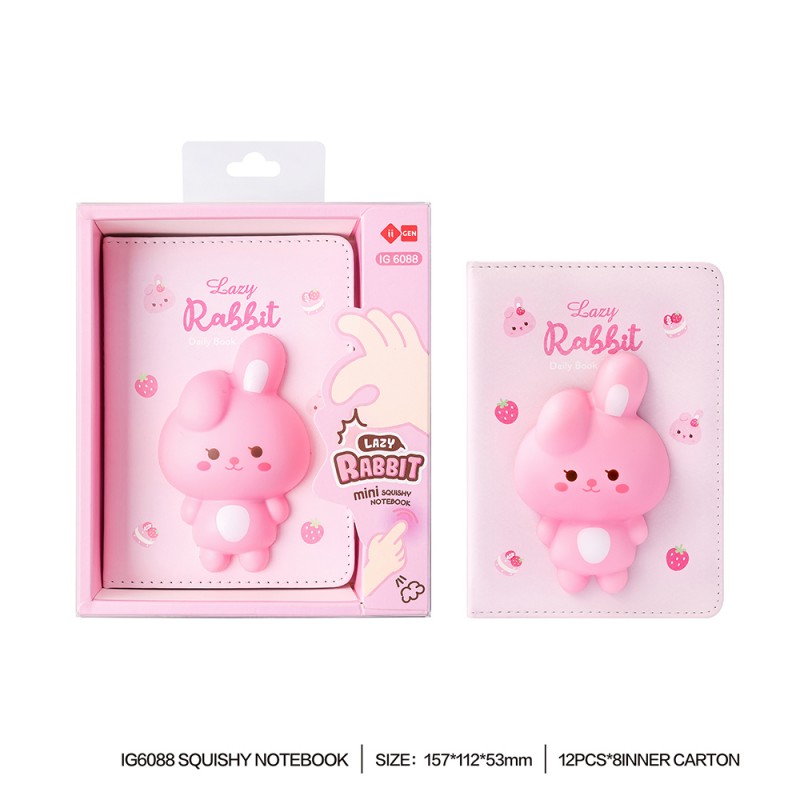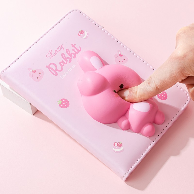 Ce petit carnet de notes kawaii, aux pages colorées fantaisie, met à l'honneur différents animaux squishy en relief sur la couverture pour vous détendre.