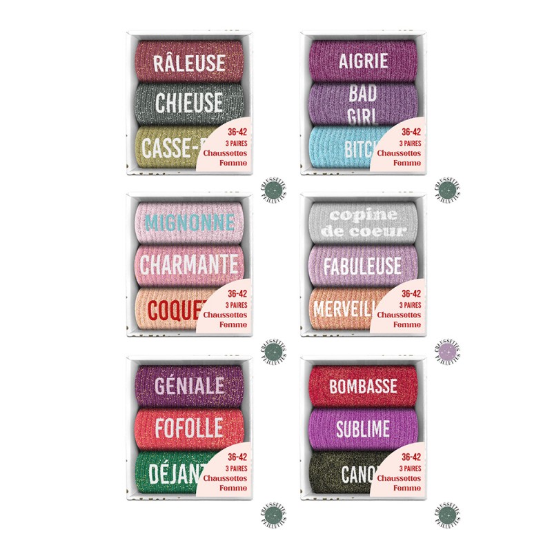 Ces trois paires de chaussettes humoristiques à paillettes sont disponibles en plusieurs modèles, tous plus rigolos et touchants les uns que les autres.