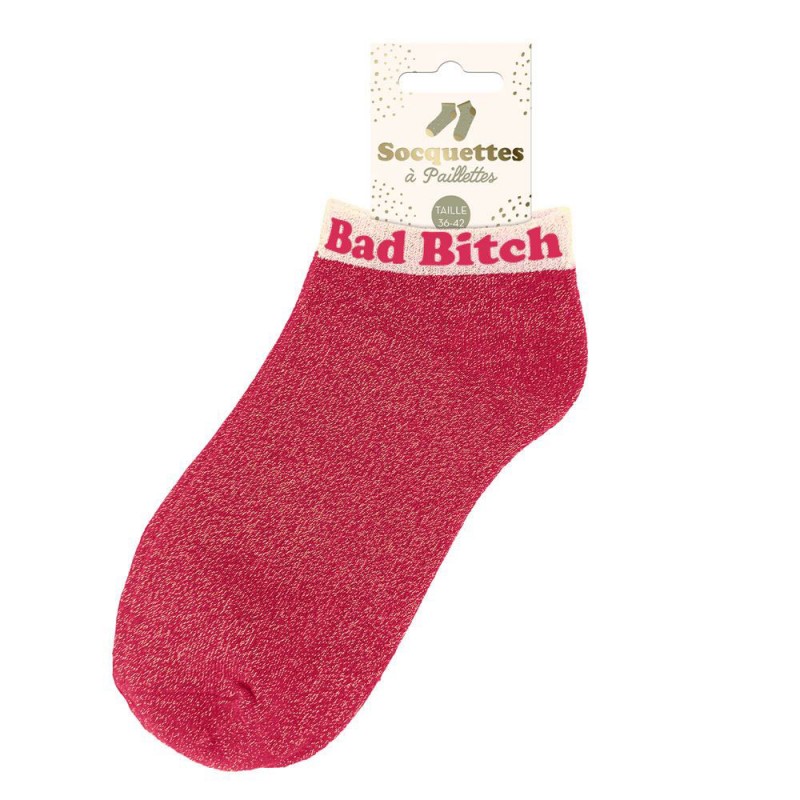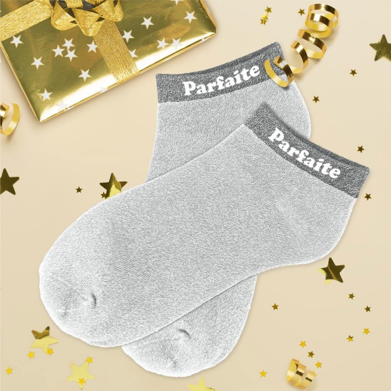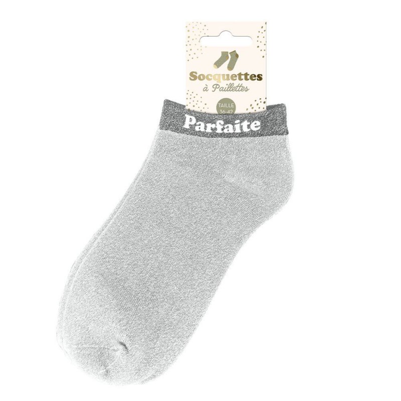 Ces socquettes pailletées hautes en couleur mettent en avant un mot sur chaque chaussette, véritable qualité ou défaut.