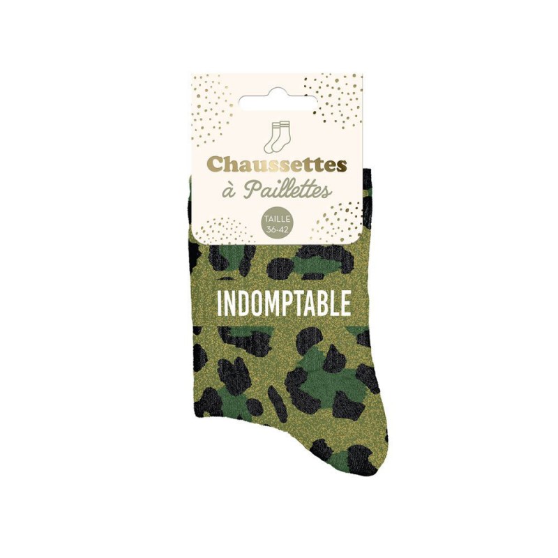 Chaussettes paillettes colorées fantaisie imprimé félin.