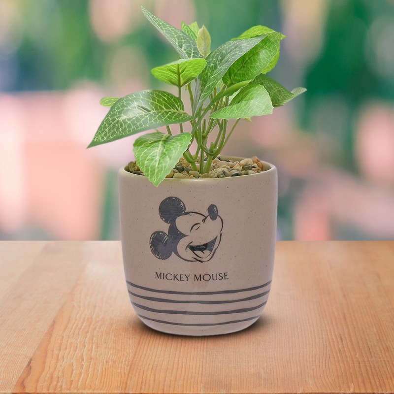 Plante artificielle en pot Mickey Mouse Disney avec déco galets.