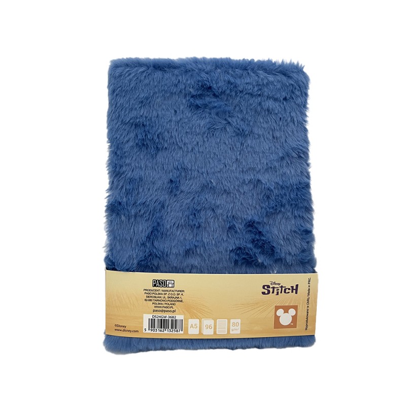 Carnet de notes Stitch Disney fourrure bleue et poche avant zippée.