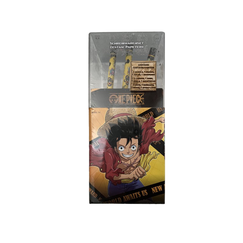 Ensemble papeterie manga One Piece 7 pièces.