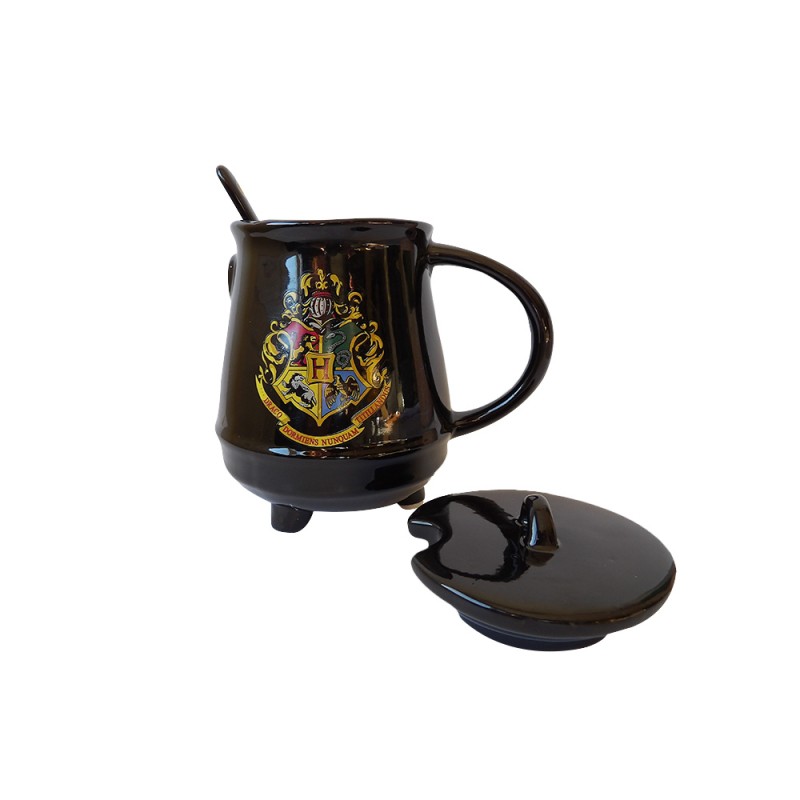 Ce mug chaudron Harry Potter avec blason poudlardien, sous licence officielle, est livré avec son couvercle et sa cuillère.