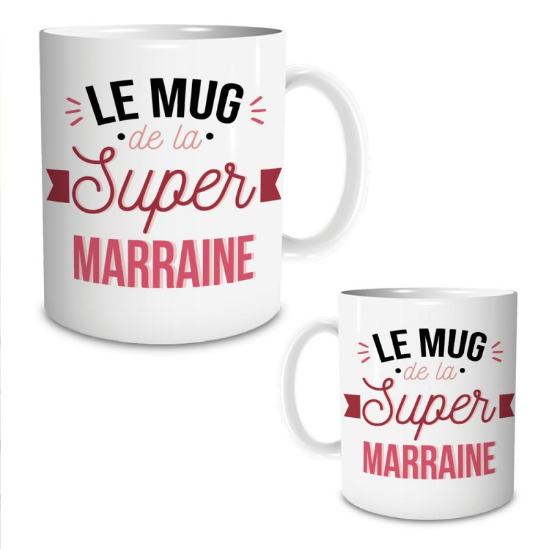 Ce mug fantaisie de la super marraine propose des couleurs pétillantes et des formes épurées.