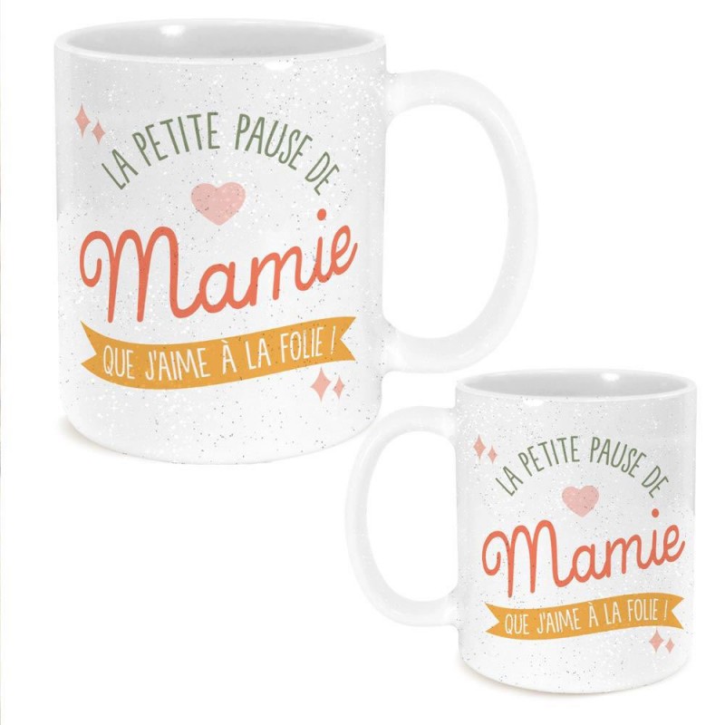 Mug à paillettes « La Petite Pause de Mamie que j'aime à la Folie ».