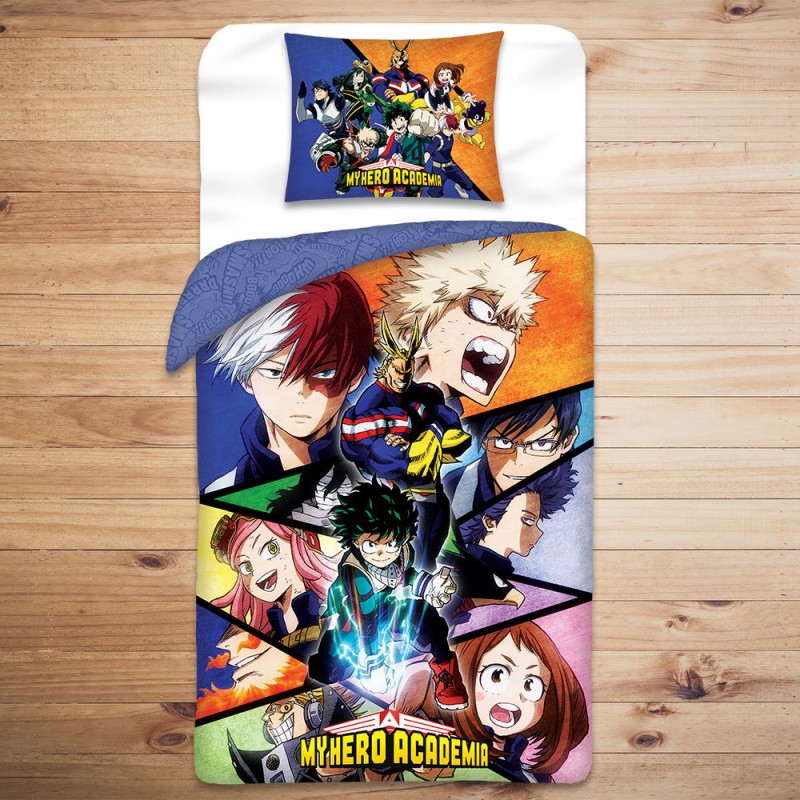 Cette parure de lit une place, sous licence officielle, met à l'honneur les personnages du manga My Hero Academia.