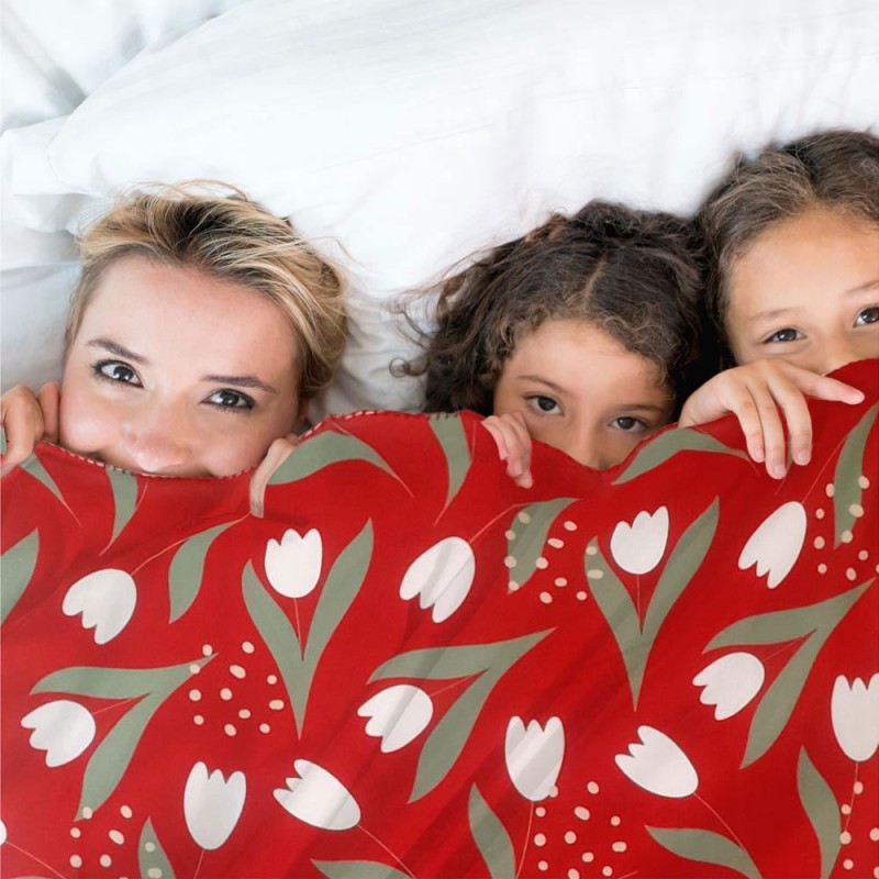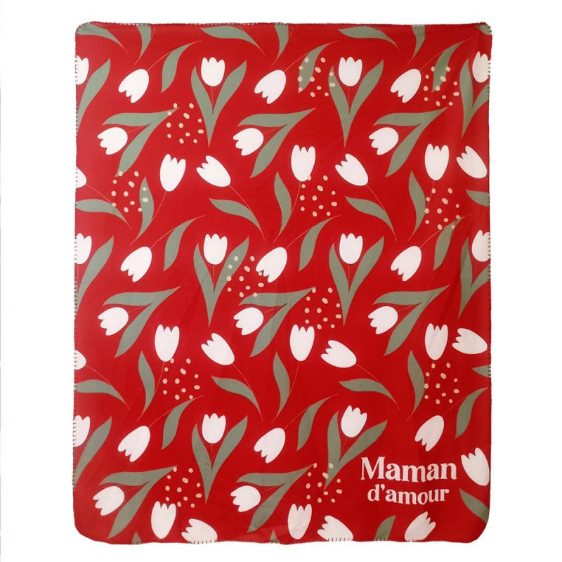 Cette grande couverture rouge toute douce, parsemée de jolies tulipes blanches, est à réserver à votre maman d'amour.
