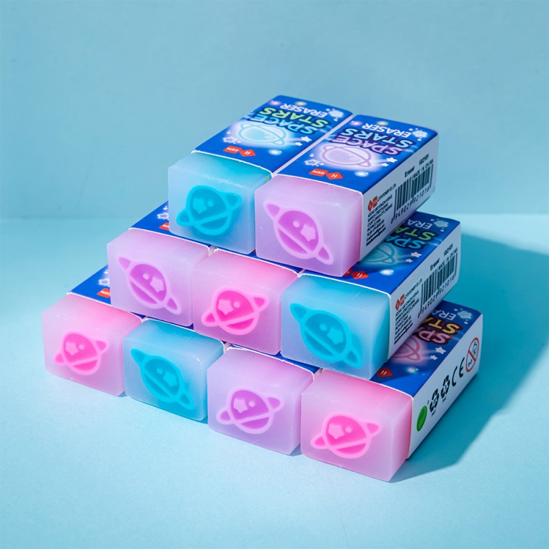 Cette gomme fluo "space stars" plaira aux fans de planète, système solaires, espace et autres étoiles.