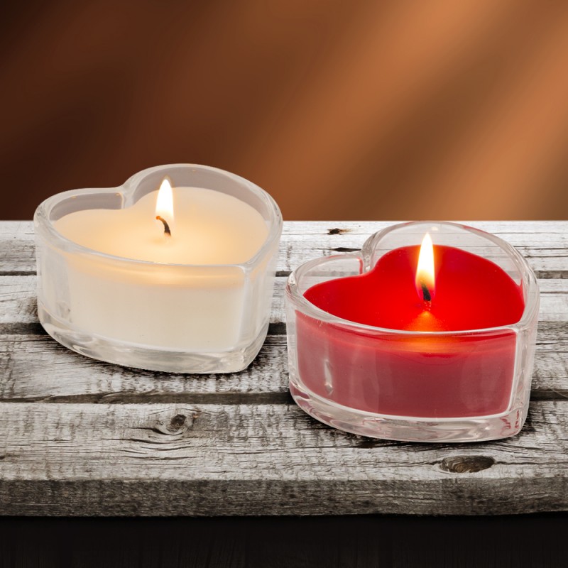 Ces trois bougies rouges romantiques (blanches ou rouges, arrivage aléatoire) prennent la forme de jolis coeurs.