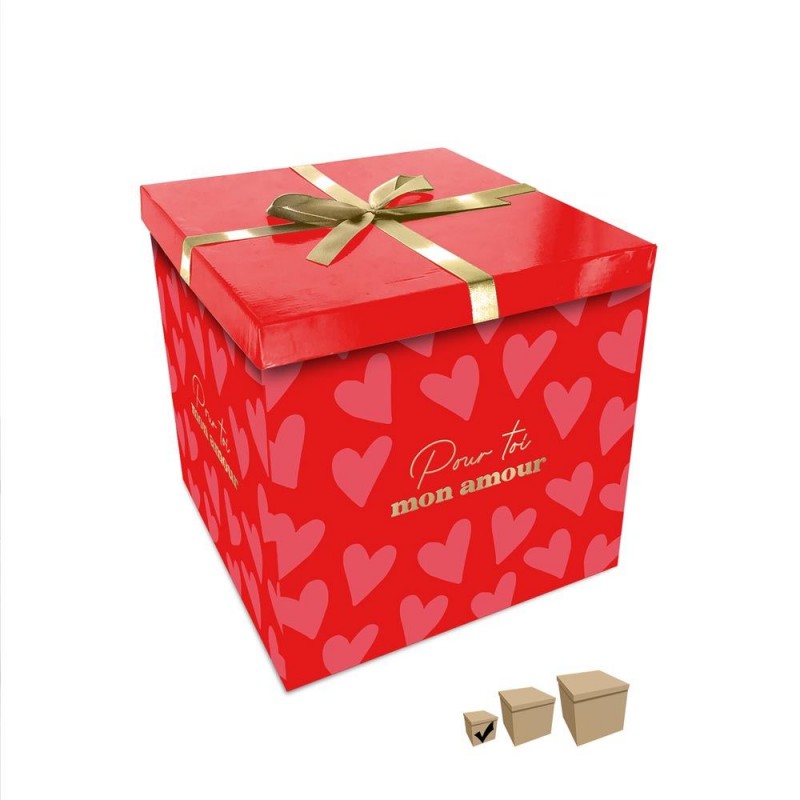 Cette boîte cadeaux rouge "Pour toi mon Amour", disponible en trois modèles différents, est une excellente idée pour remercier votre amoureux ou amoureuse.
