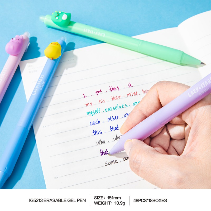 Stylo gel coloré effaçable animaux kawaii 3D.