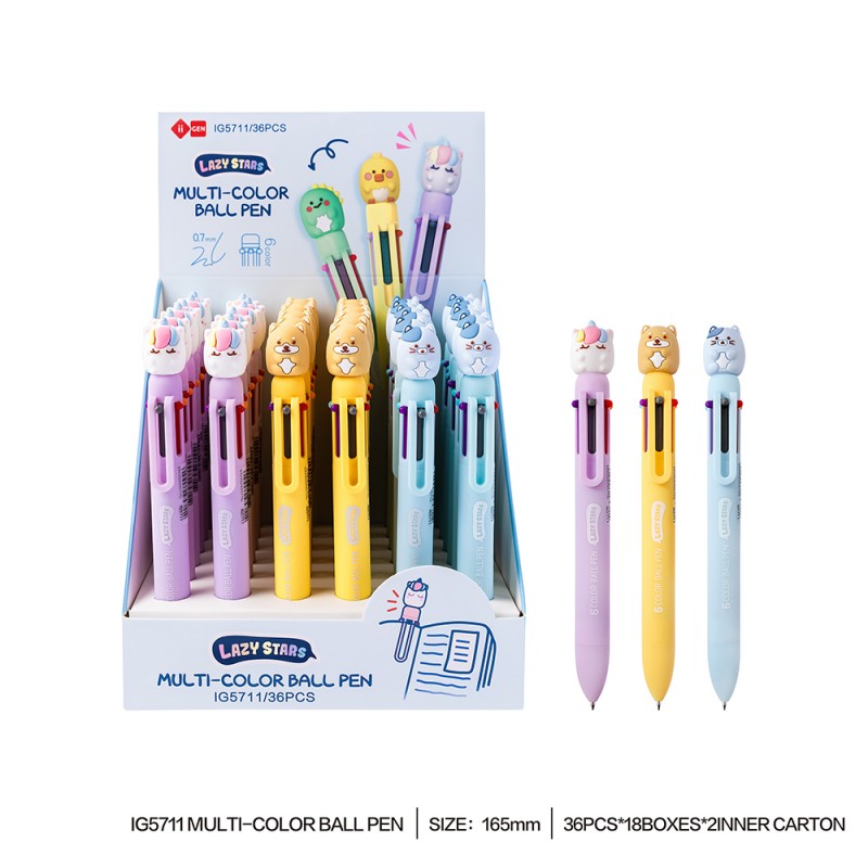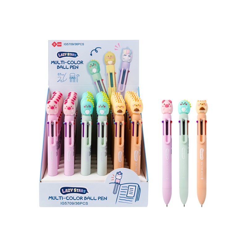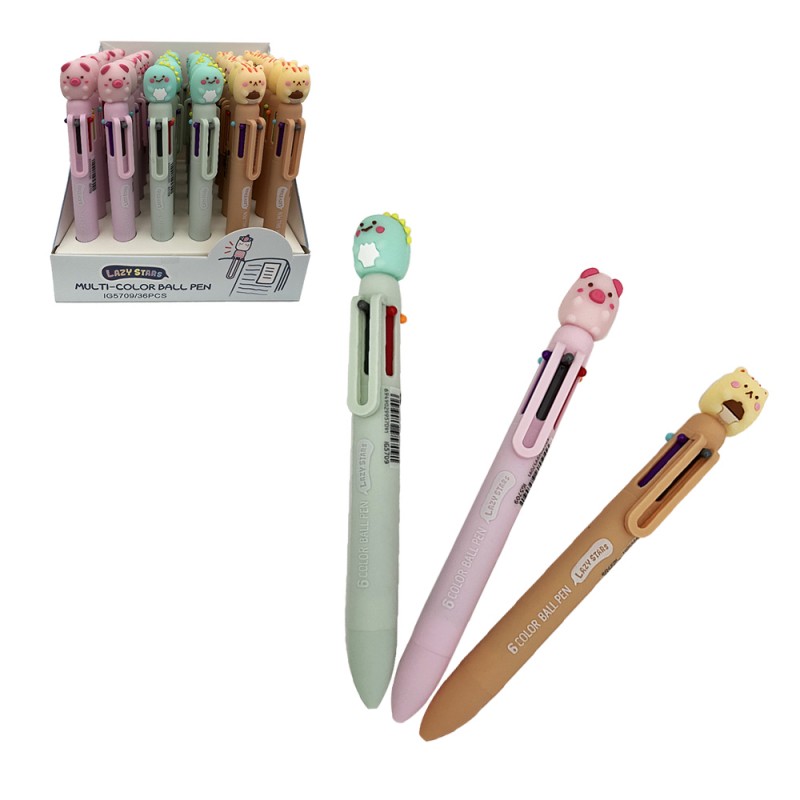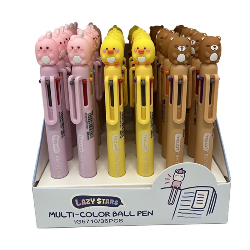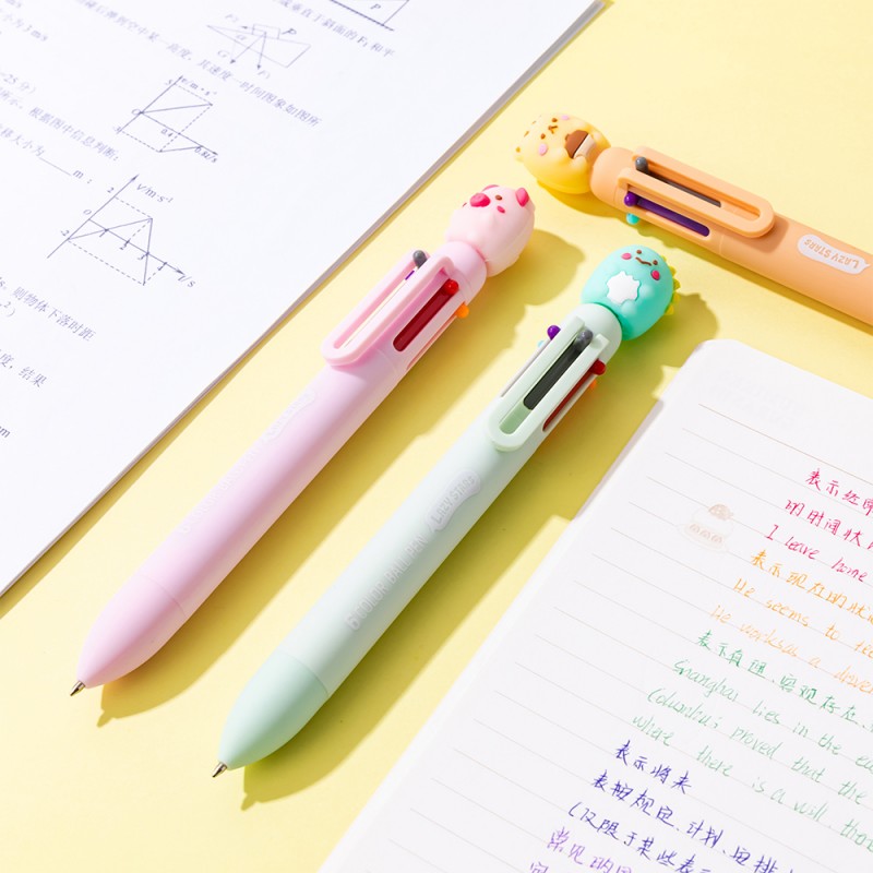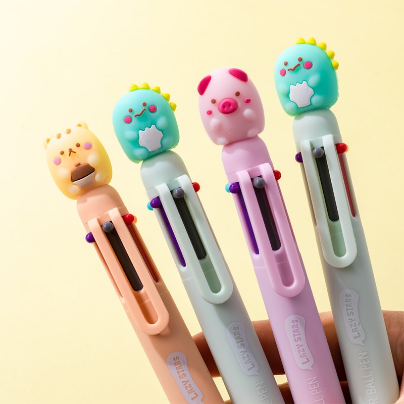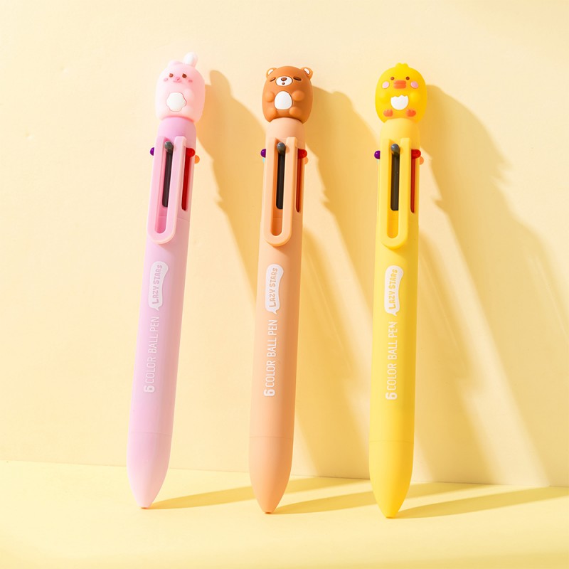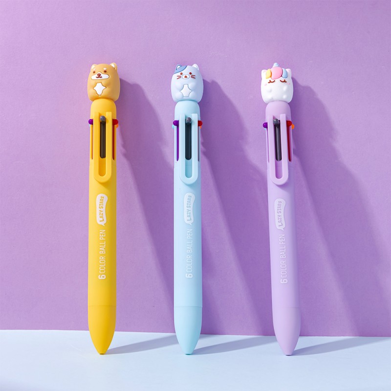 Stylo multicolore animaux fantaisie kawaii - 6 couleurs.