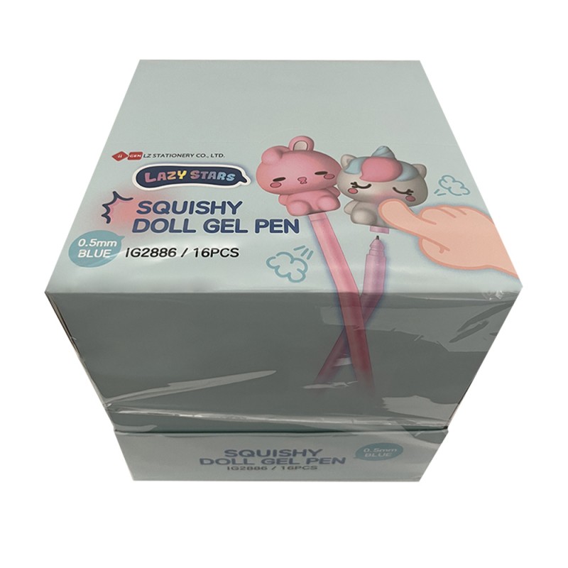 Stylo gel tête animaux kawaii squishy 3D.
