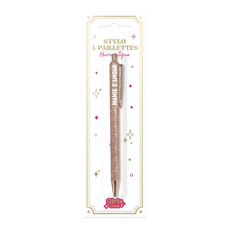 Ces stylos bille pailletés originaux mettent en avant un mot mignon, rigolo ou décalé.